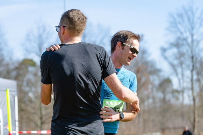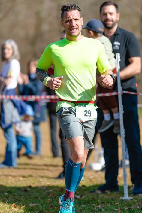 Bei den Männern kristallisierte sich schnell ein enger Kampf zwischen 4 Läufern heraus. In der ersten Kurve lag Nikolaos Svarnas noch leicht vor Roland Golderer (SV Oberkollbach), Jan Werner (TV Büchenau) und Adrian Kannegießer (LSG Weiher). Im Laufe der 4 Runden durch das flache Waldgelände änderte sich dann die Reihenfolge. Jan Werner, welcher sich am Anfang zurückhielt, konnte sich an die Spitze des Feldes setzen und überquerte mit 35:03 Minuten als Erster die Ziellinie. Lediglich 11 Sekunden dahinter ordnete sich Adrian Kannegießer auf dem 2. Platz ein. Roland Golderer erreichte das Ziel nach 36:36 Minuten und belegte somit den 3. Platz. Lokalmatador Nikolaos Svarnas vom Gastgeberverein LG Altenb. Karlsdorf-Neuthard sicherte sich mit 37:26 den 4. Platz in der Gesamtwertung und den 2. Platz in der Kreiswertung.