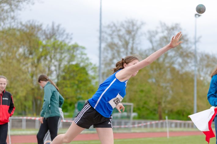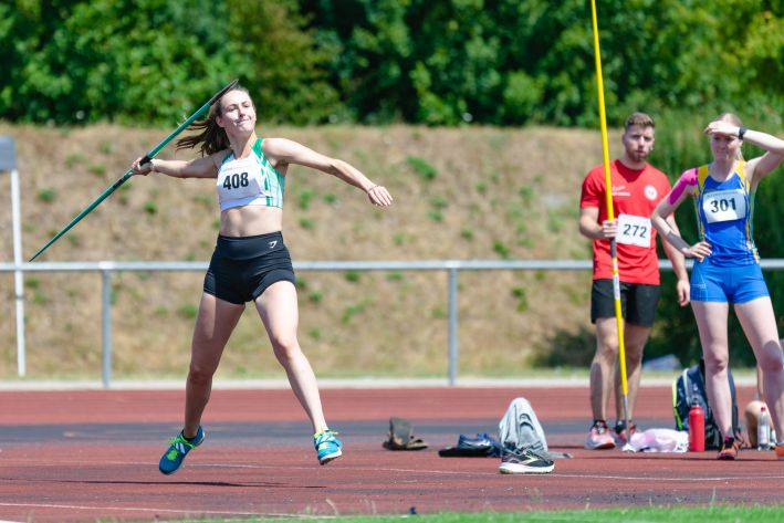 Aber auch die einheimischen Athletinnen und Athleten zeigten toll Leistungen unter dem anfänglich bedeckten Himmel. Neben den Laufdisziplinen liegt der Fokus beim Werferpokal, wie der Name schon sagt, auf den Wurfdisziplinen. Um den jeweiligen Sieger zu ermitteln, wird ein 3-Kampf aus Speer, Diskus und Kugel gebildet.