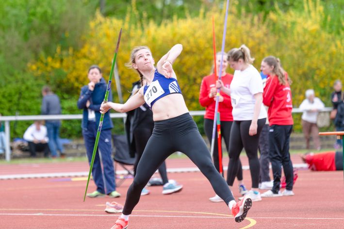 Beim Speerwurf der Männer machte Nicolas Lindemann dem Gastgeberverein alle Ehren. Mit 44,24 Metern holte der 2005 geborene Athlet den 1. Platz. Wahrscheinlich war Frank Lein nicht weniger stolz. Mit 41,11 Metern holte er zusammen mit dem 2. Platz auch einen Vereinsrekord für die LG Altenb. Karlsdorf-Neuthard. Bei den Frauen ging der erste Platz an den TV Helmsheim. Lena Sophie Bauer blieb zwar knapp unter ihrer Bestleistung, konnte jedoch trotzdem souverän mit 29,39 Metern siegen.